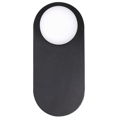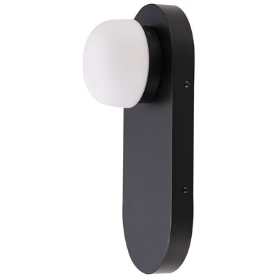 LFX/WS/KNOB/15W/30K/BK Wall Sconce Round White Glass on Black Wall Plate Dimmable 120V